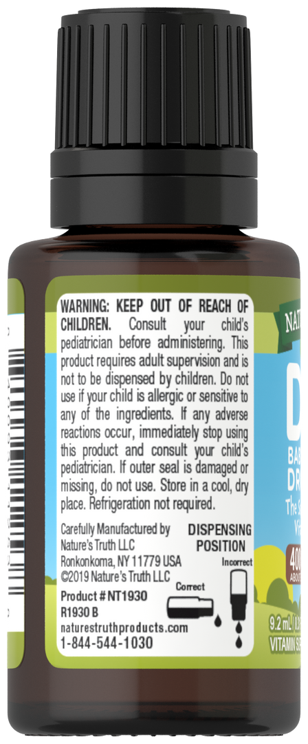 Baby D3 Drops Liquid Vitamin D 400 IU, 9.2 mL (0.31 fl oz) Dropper Bottle