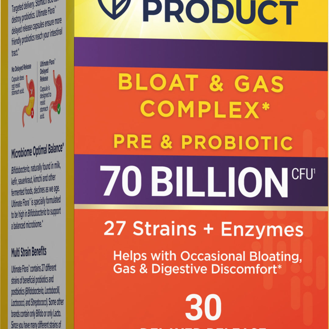 Bloat and Gas Probiotic, 70 Billion CFU, 30 Delayed Release Vegan Caps