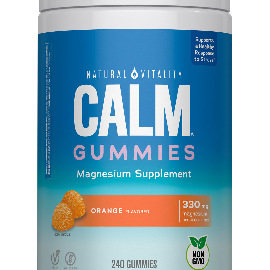 Natural Vitality CALM® Gummies offer a delicious and easy way for both kids and adults to replenish daily magnesium levels with highly absorbable essential magnesium citrate*†. These vegan, orange flavored gummies help you enjoy a moment of CALM, wherever and whenever you like – no mixing required!*