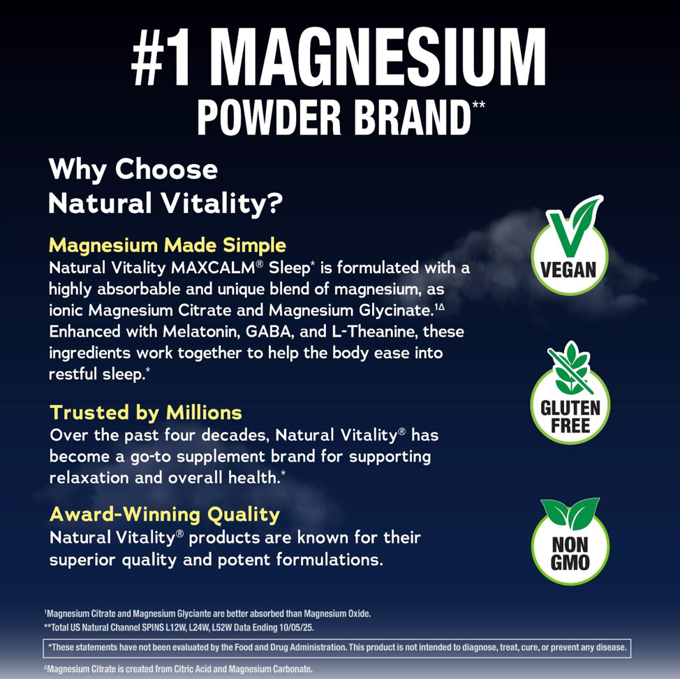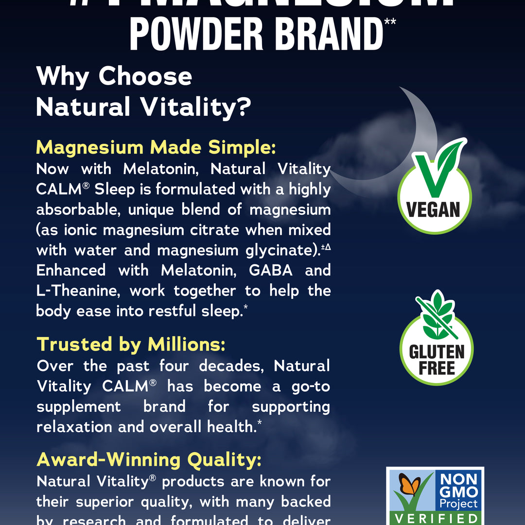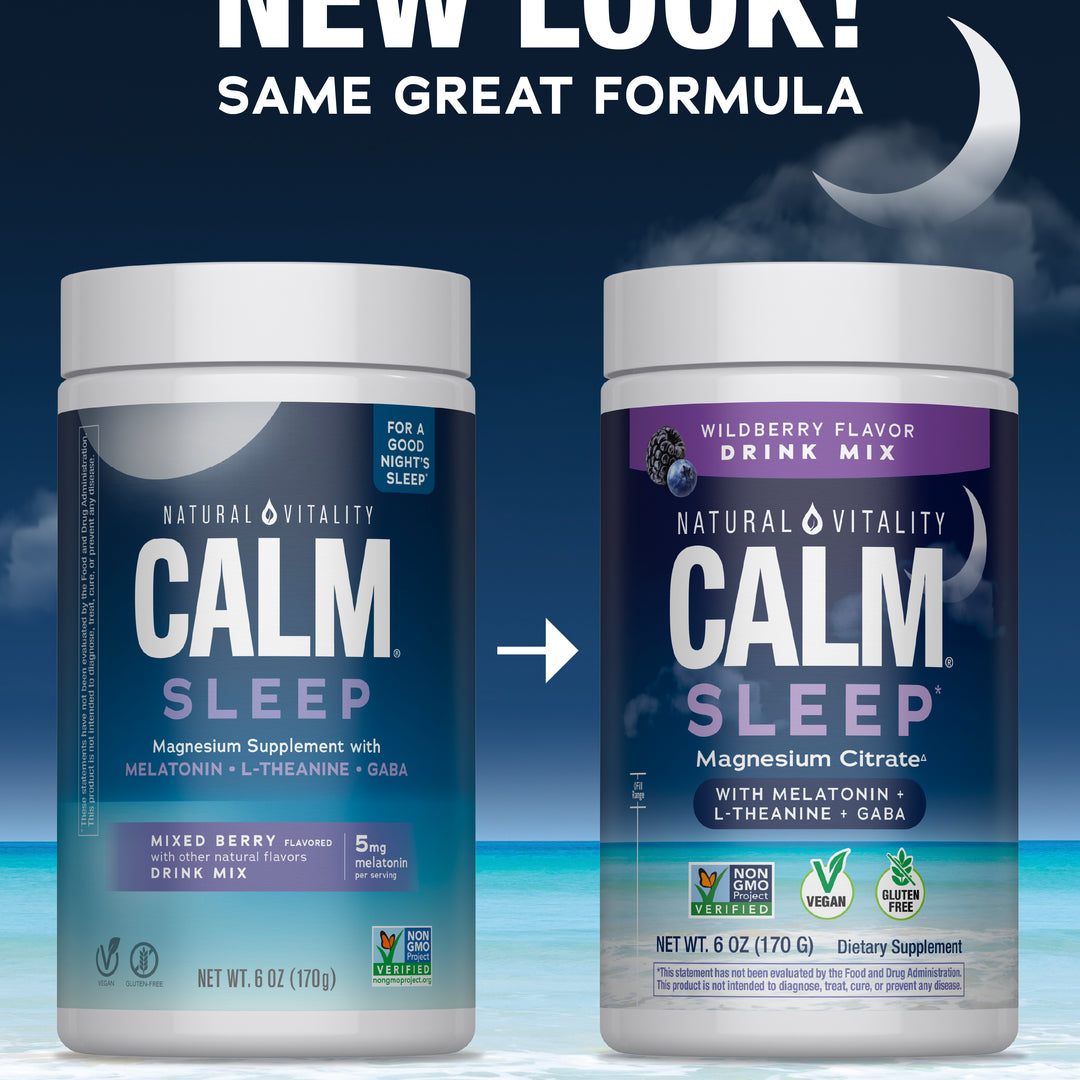 When the day settles but your mind won’t, find your calm with Natural Vitality CALM® Sleep Drink Mix.* This soothing blend of magnesium, melatonin, L-theanine, and GABA is perfect for those nights when you need extra sleep support.* Vegan and with a delicious wildberry flavor, it’s a bedtime ritual you’ll actually look forward to. Just pour, fizz, mix, and sip your way to CALM.*