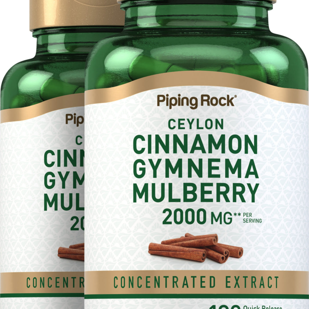 Piping Rock Ceylon Cinnamon Gymnema Mulberry Complex is available in easy-to-swallow quick-release capsules for optimal absorption.