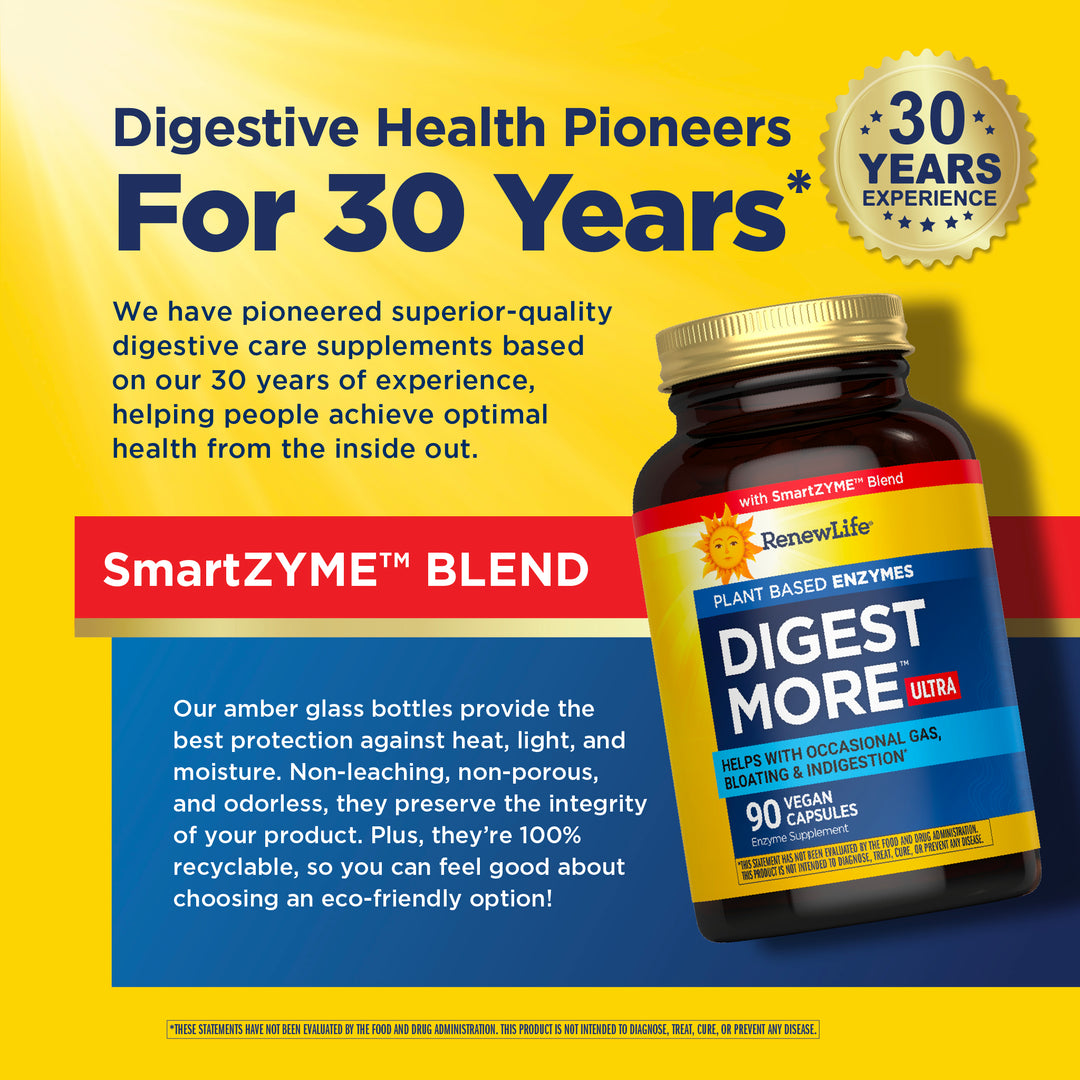 Made with naturally derived enzymes, DigestMore™ Ultra Enzymes is an ultra-strength plant-based formula that helps break down hard-to-digest foods and helps relieve occasional gas, bloating and indigestion.*