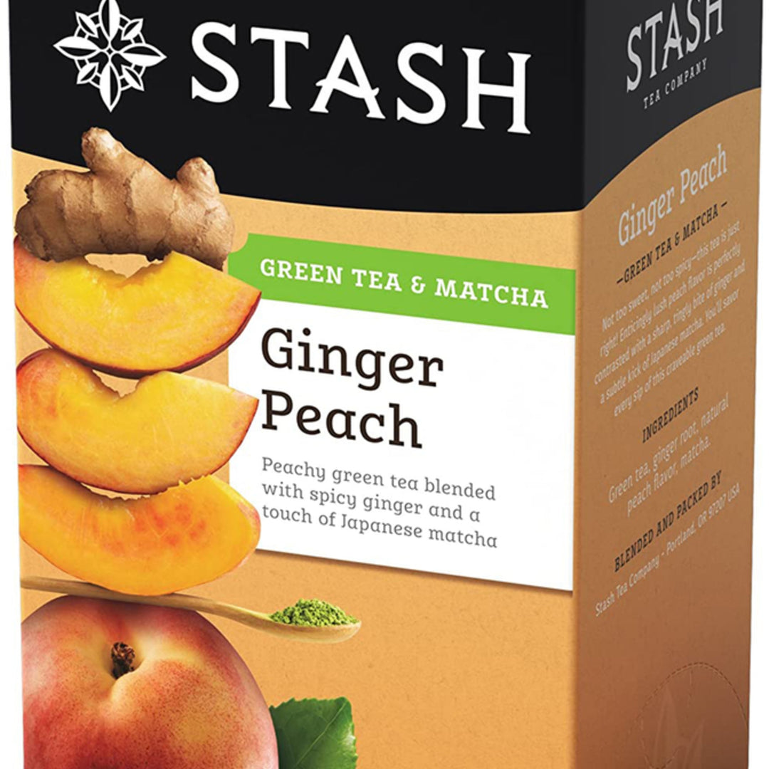 Peachy green tea blended with spicy ginger and a touch of Japanese matcha.