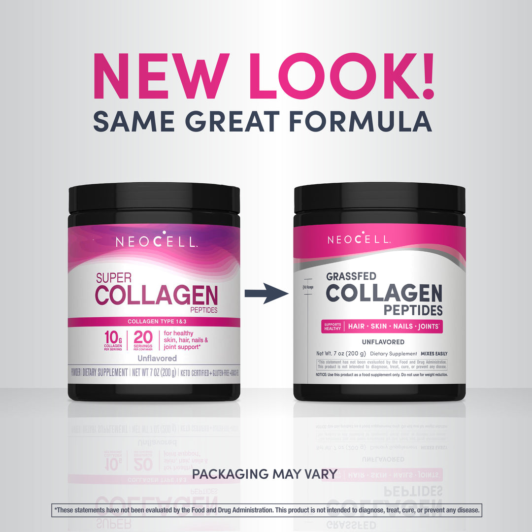 Embrace your radiance from within with our Grassfed Collagen Peptides Powder. Each serving delivers 10 grams of BioActive NeoCell® Collagen Peptides™, featuring Collagen Types 1 and 3 to support your body’s collagen production, which naturally declines with age.*