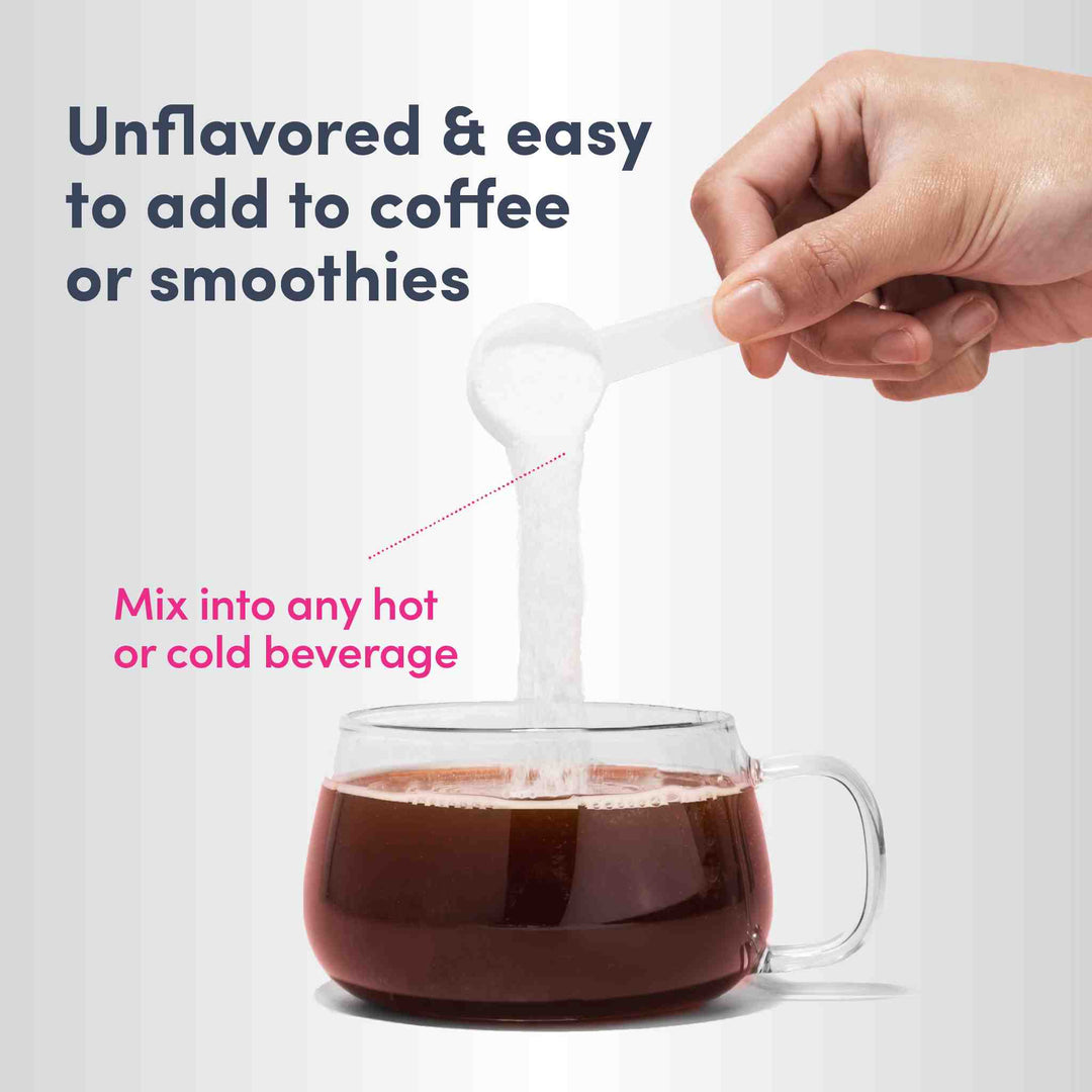 - Unflavored powder mixes easily into food, beverage, or smoothie