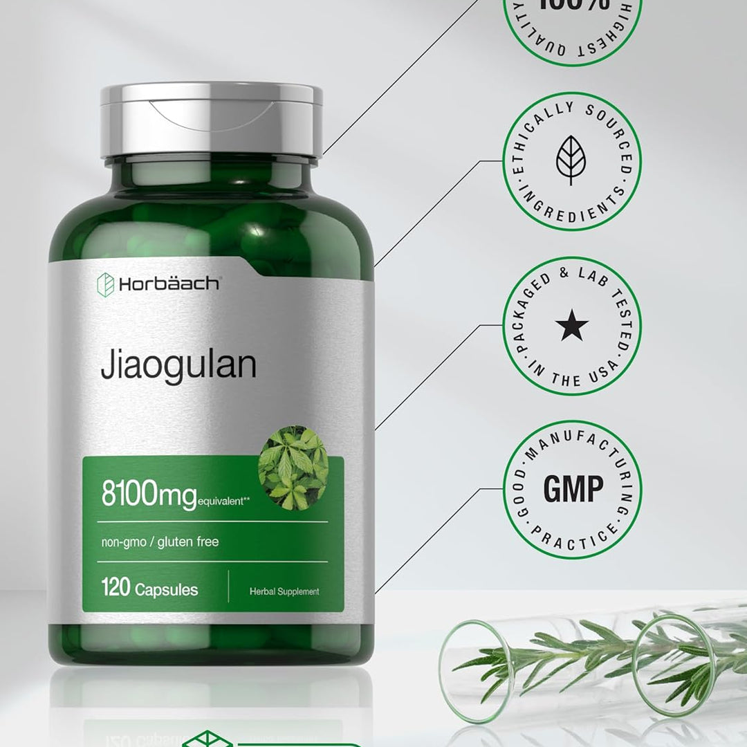 Discover this ancient wonder with Piping Rock! Our formula delivers 8100 mg of Jiaogulan Extract (Gynostemma pentaphyllum) per serving and is tested to ensure excellence. Quick-release capsules make it easy to take anywhere, anytime. Now, get exceptional value on this bountiful herb with our 120-day supply!