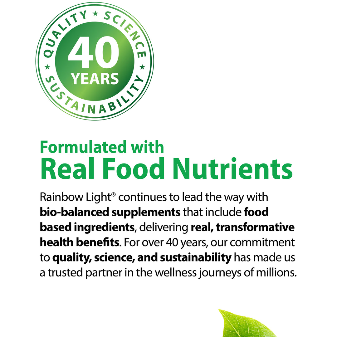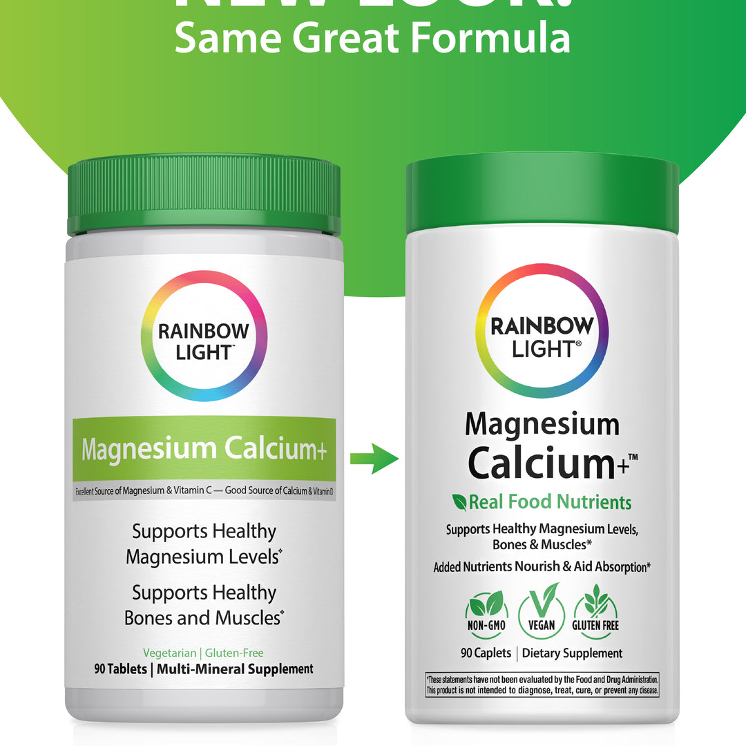Power your every move with Rainbow Light® Magnesium Calcium+™ caplets. Packed with magnesium, calcium, and other essential vitamins, our formula supports strong bones, muscles, teeth, and nervous system health.* With the addition of a digestive complex blend and beneficial botanicals, these vegan caplets will help you fuel your performance from the inside out.*