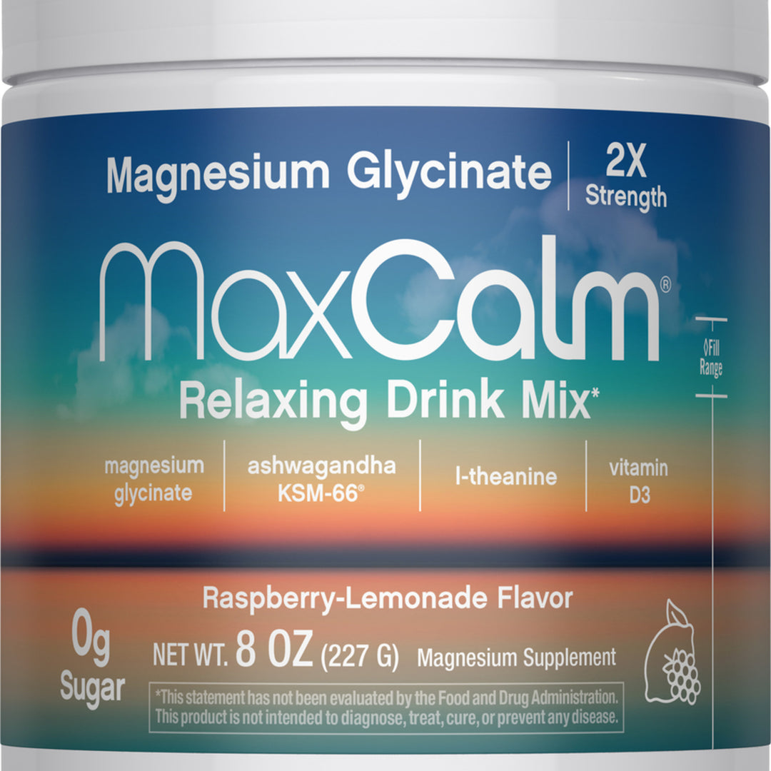 MaxCalm Relaxing Drink Mix Magnesium Glycinate Raspberry-Lemonade, 8 oz (227 g) Bottle