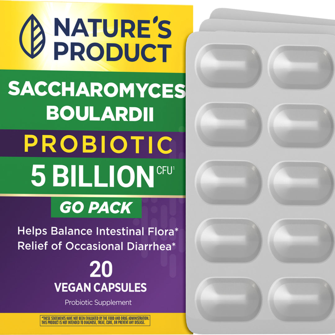 Saccharomyces Boulardii 5 Billion CFU GO PACK, 20 Vegan Capsules