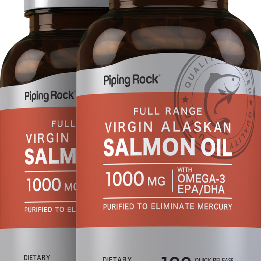 PipingRock Wild Alaskan Salmon Oil presents nature’s perfect essential fatty acid complex! We source our oil from deep-swimming, cold-water salmon from pristine Alaskan waters, and then purify the oil to remove mercury. The end result is a superior-quality nutritional supplement that supplies the life-enhancing benefits of over seven different omega fatty acids along with naturally-occurring astaxanthin.