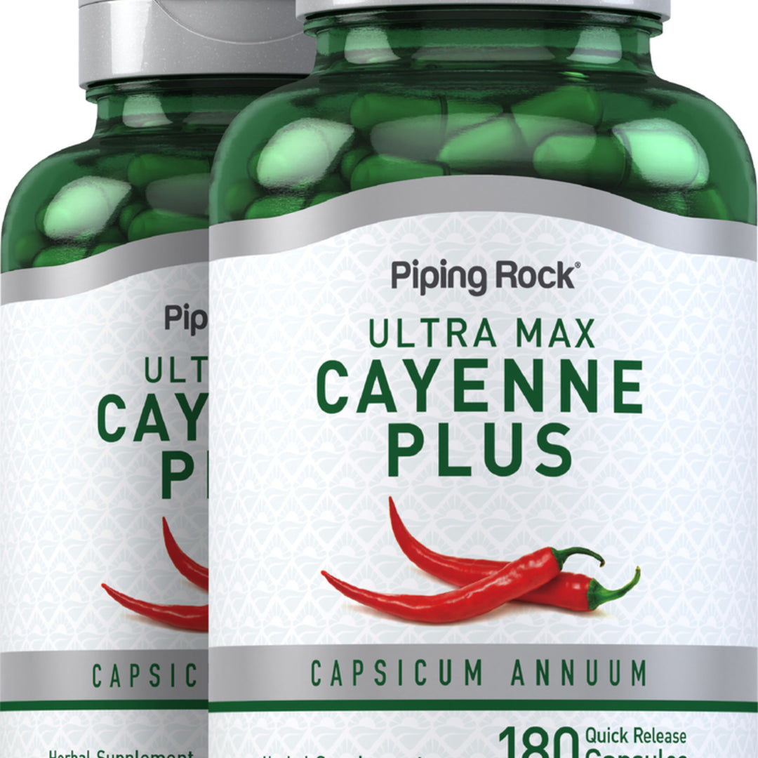 Ultra Max Cayenne Plus is PipingRock's superstar Cayenne supplement! Sourced from superior-quality natural ingredients, this premium formula is packed with cayenne extract, ginger root and hawthorn berry for peak antioxidant support. Combining three time-tested herbs in one powerful supplement, PipingRock Ultra Max Cayenne Plus is the ultimate way to add this red hot spice to your daily routine without the tingling on your taste buds!